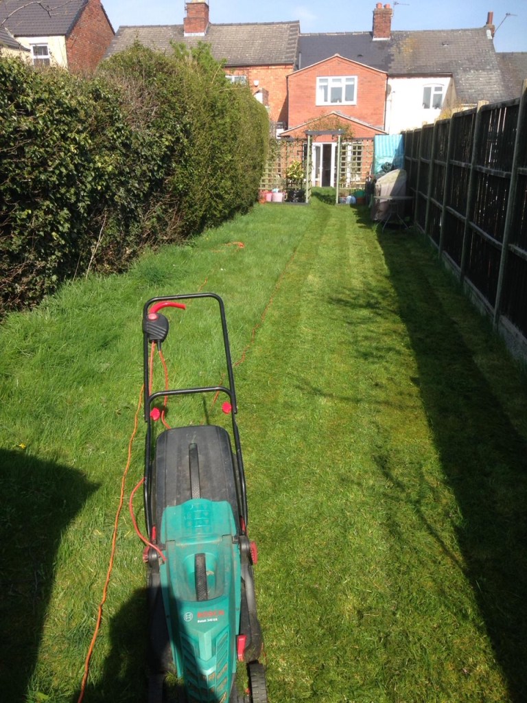 Now this used to be my husband’s area of expertise… but since we separated its something that I’ve had to manage myself…so after putting off for as long as possible….I decided the time came to do something about it when the cats looked like they were walking through a jungle! After watching a youtube video to work out how the lawn mower fit together (don’t mock me I’m sure you’ve turned to youtube for guidance in your time..) I impressed myself by cutting the grass & surprised myself that it was actually quite enjoyable & therapeutic watching the ‘almost’ straight lines appear in the grass… AND it’s a good work out AND I caught the sun – win win!