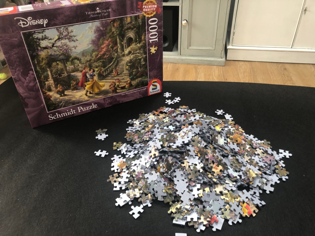 My mum loves puzzles & kindly sent me one to keep me occupied in isolation… I honestly haven’t done a puzzle in years but it was so exciting to receive a ‘Disney Snow White’ puzzle in the post..! Completing the puzzle on the other hand –well that’s another story.. I’ve had it for 3 weeks now & still haven’t been able to put all the pieces together– but I’ll tell you what – once I find a couple of pieces that fit together after a good 20 minutes staring at it – I feel like I’ve won & squeal with delight… such a sense of achievement! How much longer have we got in isolation? I’m going to need it!!